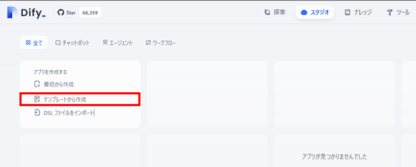 さまざまなテンプレートが用意されているので、まずはテンプレートを利用してアプリを作成してみます。