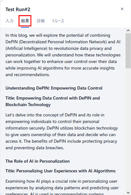 必要な内容を入力してアプリを実行し、結果が出力されるかをテストします。