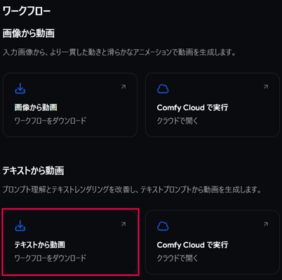 ワークフローデータは、公式に公開されている公式ワークフローをダウンロードして使用します。