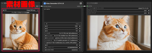 LTX-2.3のimage2videoは、最初のフレームを素材画像として動画を生成します。