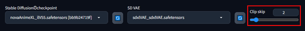 再読み込みを行うとTOP画面の上部にClipskipのスライダーが出現します