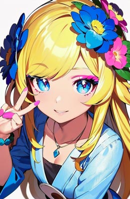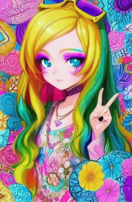 (((highest quality))), HDR, ((detailed)), ((Doodle Art)), ((masterpiece)), ((Super detailed)), (((Colorful flowers))),(((Stylish))),(chibi:1.2),Colorful color palette,high-level image quality,(Little girl with makeup:1.37),Unprecedented amount of drawing,style of anime,anime girl with sunglasses and a necklace making a peace sign, anime style illustration, decora inspired illustrations, anime vibes, beautiful anime art style, blonde anime girl with long hair, digital art on pixiv, anime graphic illustration, colorful illustration, cute art style, in the art style of 80 s anime, colorfull illustration, rossdraws pastel vibrant,Official Art, Vector art, Stylish design, (((The most beautiful girl)))