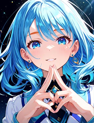 青髪+オレンジ眉