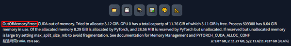 これは、CUDA使用時にGPUのVRAM(グラフィックボードのメモリ)が足りないときに発生します。