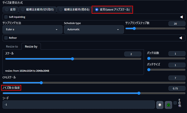 SDXLの場合は、832px~1024pxに設定して調整します。