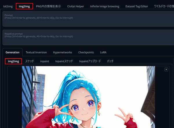 img2imgのタブから画像を読み込みます。