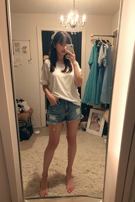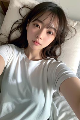 ここでは、室内でのプライベートな一枚をテーマにした、自撮り構図のプロンプトと作例を紹介します。
