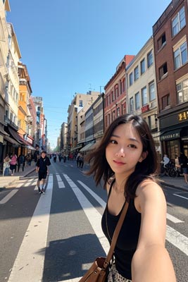 これらの例を参考に、場所、時間帯、天気、服装、表情などを自由に組み合わせて、理想の屋外自撮り画像を生成してみよう。