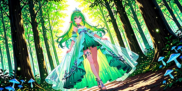 | 光と色調 | Warm dappled light, green-brown contrast, dramatic shadows | 温かい木漏れ日色、緑と茶のコントラスト、陰影のドラマ性 |