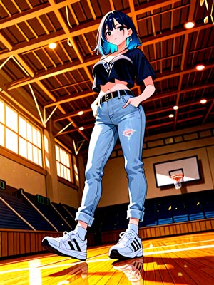 スニーカーを主役にするには、low angle from ground level(ローアングル)や floating sneakers(宙に浮かせる)などの構図指定で、靴を画面の中心に大きく配置することが最も効果的です。