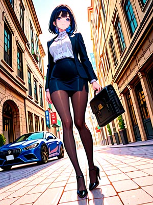 人物を含める場合は full body shot で全身を映しつつ、heels as the focal point と明示的に指定し、pencil skirtやdress with high slit など脚元が見える服装を選ぶことで、ヒールが隠れず際立つ画像になります。