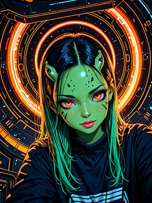 ファンタジーの世界に登場するキャラクターのような、非現実的な肌の色を表現することもプロンプトで可能です。