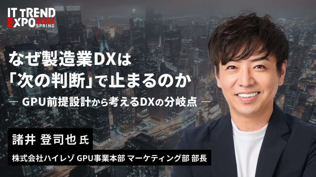 2026年3月3日(火)~3月7日(土)に開催される「ITトレンドEXPO 2026」にて、GPU事業本部マーケティング部 部長の諸井が登壇します。