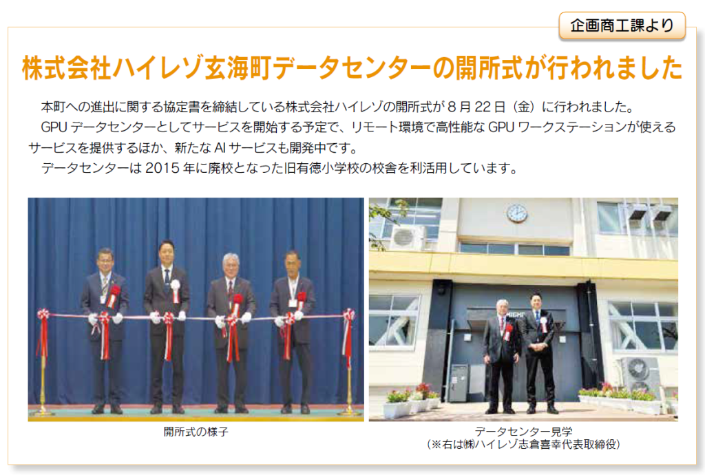 『広報玄海(2025年10月号)』に玄海町データセンター開所式が掲載されました。