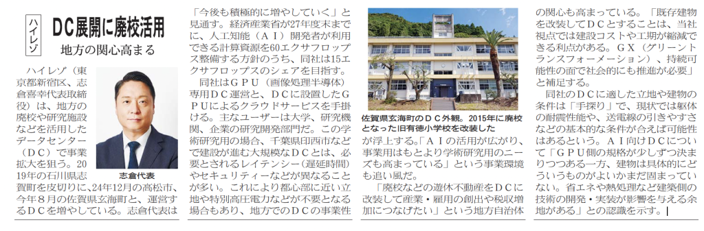 地方の廃校活用データセンター等についてご紹介しています。