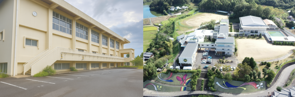 綾川町データセンターは、2022年3月に廃校となった綾川町立綾上中学校を利活用したデータセンターです。体育館下のスペースで、かつては駐輪場や部活動の練習場として利用されていた場所をデータセンターに改装しています。また、校舎の教室部分は、今後地域の皆さまが集まるコミュニティスペースとして活用する計画です。